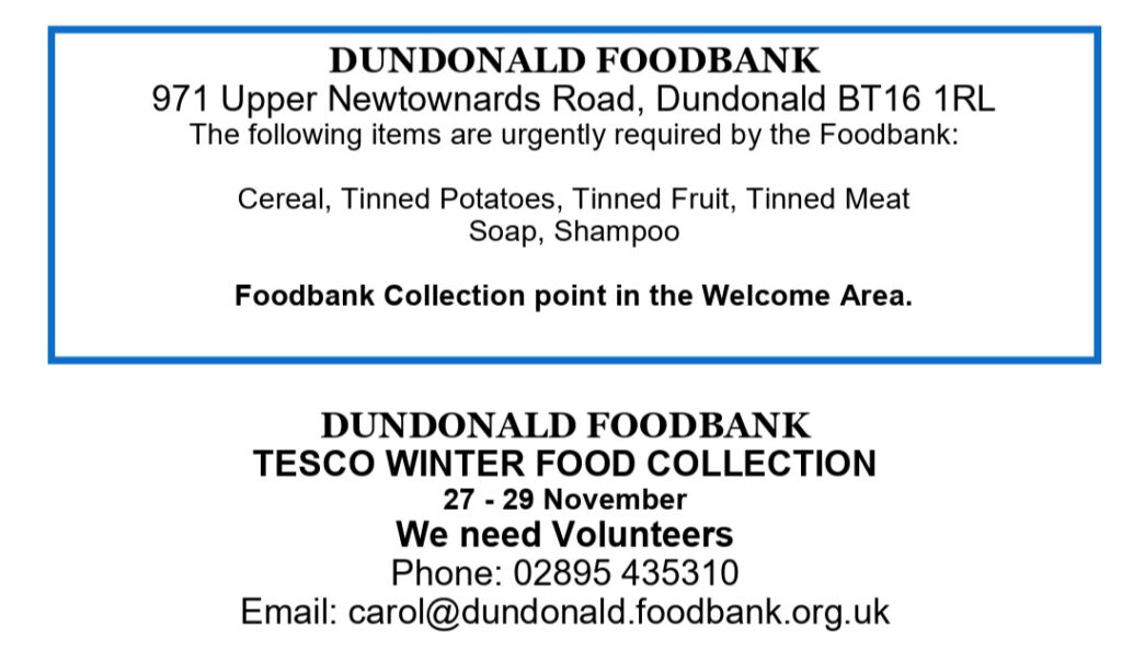 Dundonald Food Bank Appeal - 26th November 2023